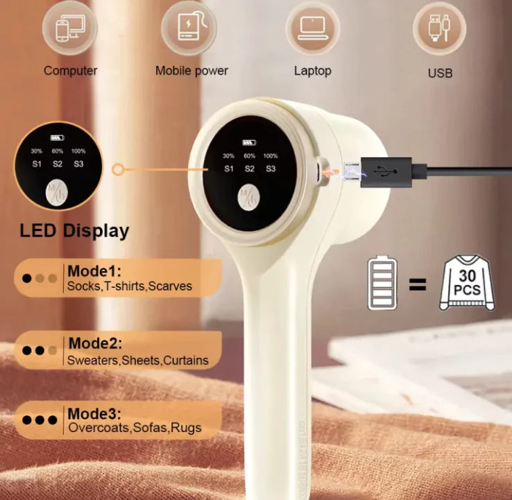 Answer 3: The lint remover offers versatile charging solutions for your convenience. You can recharge it using a wall socket, USB port, or even a mobile power bank. This means you can keep it powered up anywhere, making it perfect for your on-the-go lifestyle.